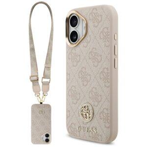 Coque Guess Hardcase 4G Strass Logo avec lanière pour iPhone 17 – Pink