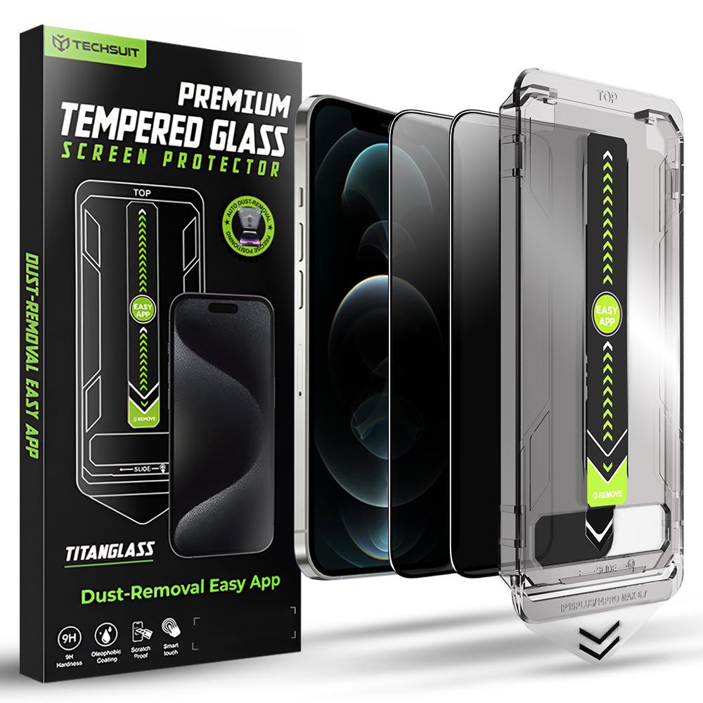 Protection d’écran Techsuit TitanGlass FullCover avec applicateur pour iPhone 12 / iPhone 12 Pro – Black