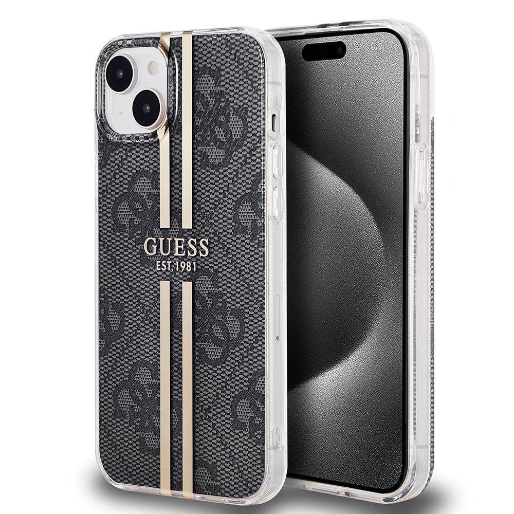 Coque Guess Liquid Glitter Gold Stripes pour iPhone 15 Plus – Transparent