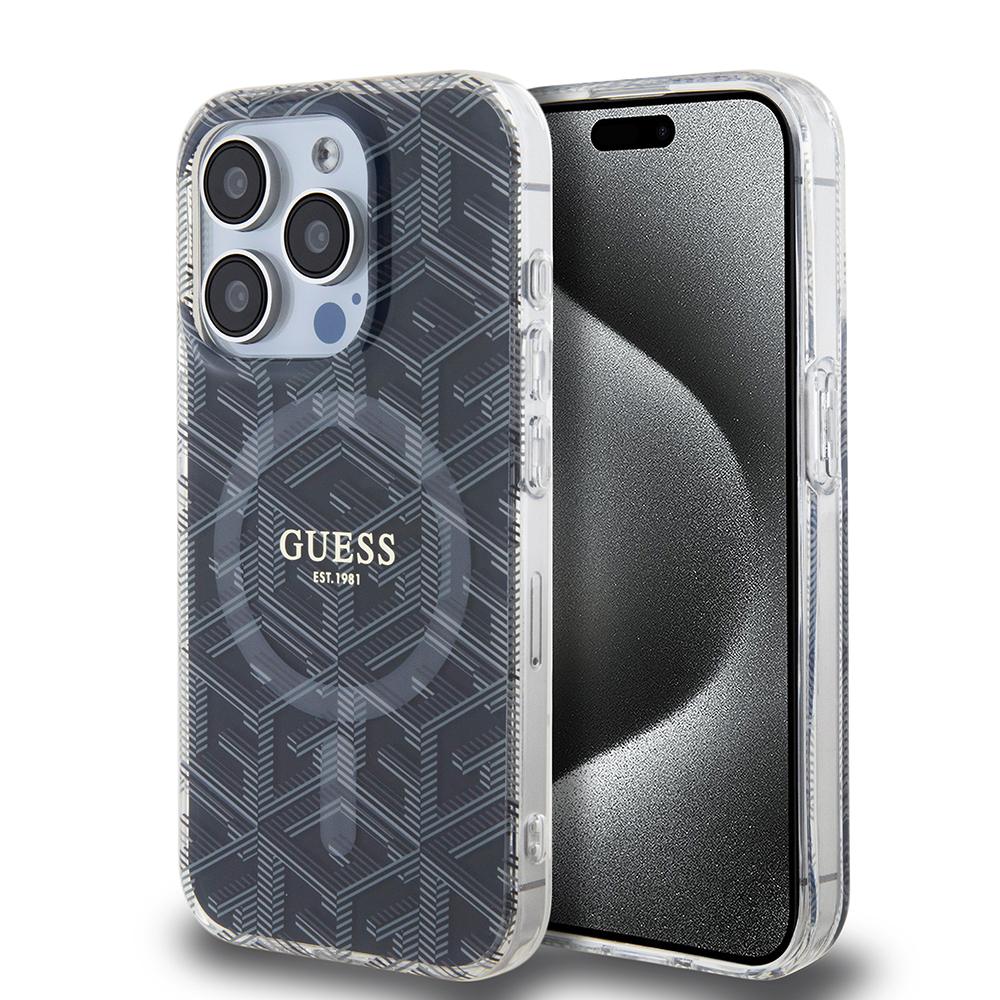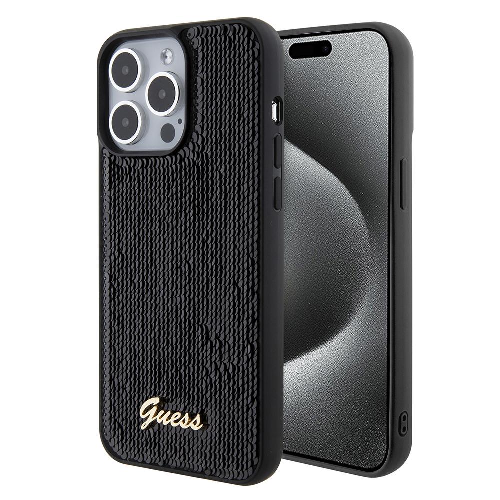 Coque Guess Ring Stand Script Glitter MagSafe pour iPhone 15 Pro Max – Black