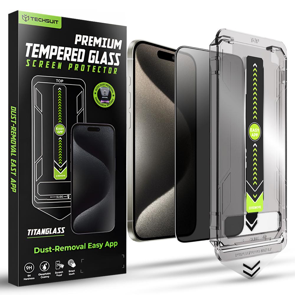 Protection d’écran Techsuit TitanGlass FullCover avec applicateur pour iPhone 15 Pro Max – Privacy