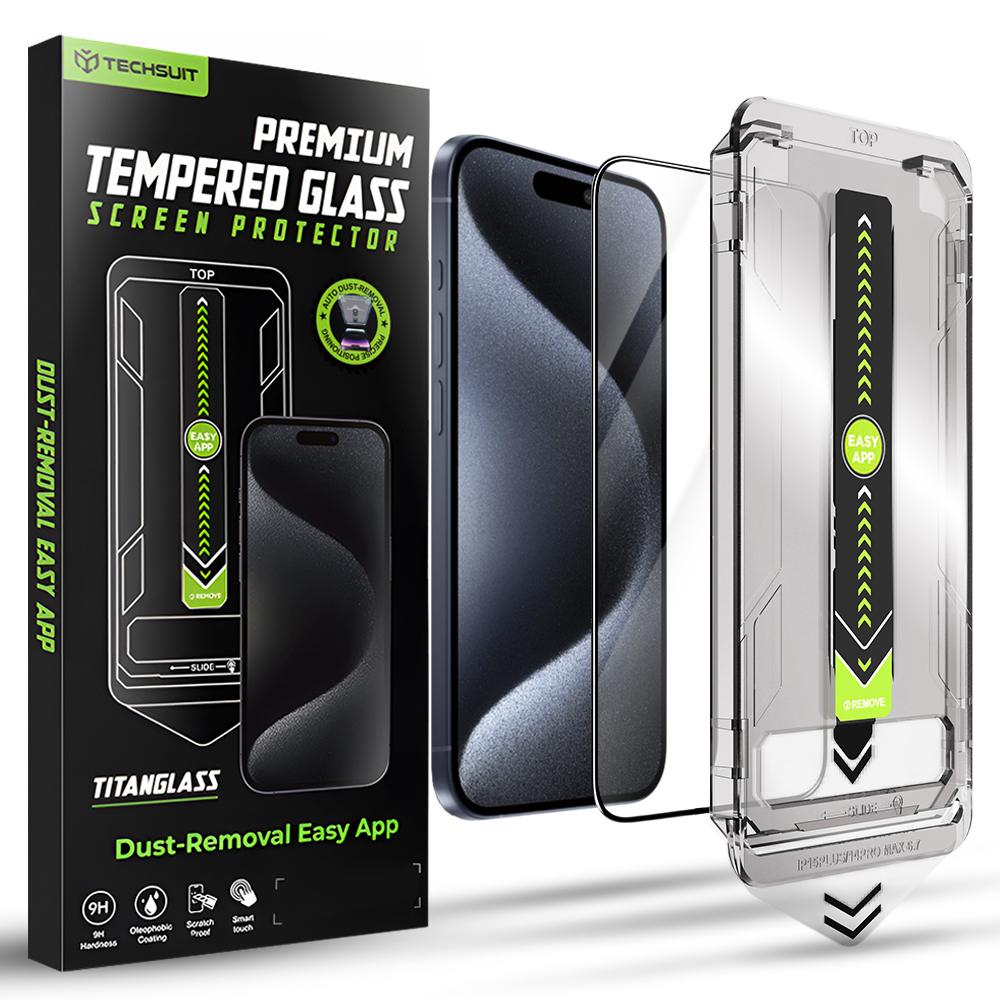 Protection d’écran Techsuit TitanGlass FullCover avec applicateur pour iPhone 15 Pro – Black