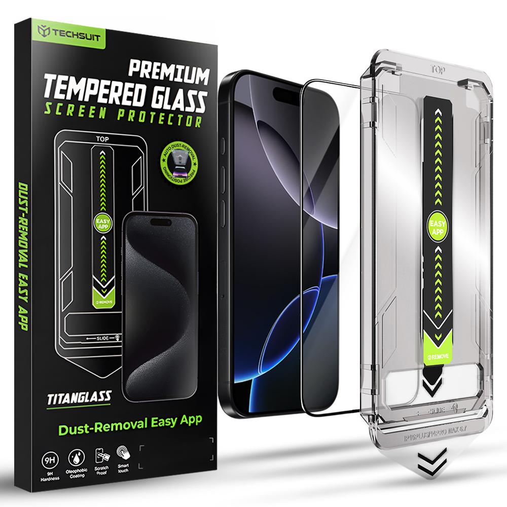 Protection d’écran Techsuit TitanGlass FullCover avec applicateur pour iPhone 16 Pro Max – Black