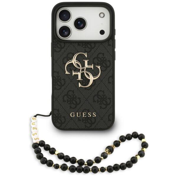 Coque Guess Hardcase 4G Classic Logo avec dragonne de perles pour iPhone 17 Pro – Black
