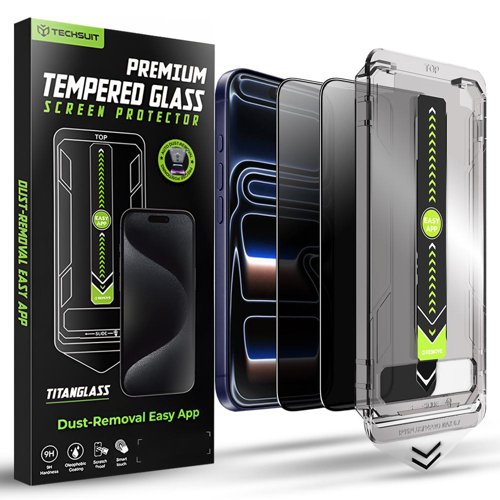 Lot de 2 protections d’écran Techsuit TitanGlass FullCover avec applicateur pour iPhone 17 Pro – Privacy