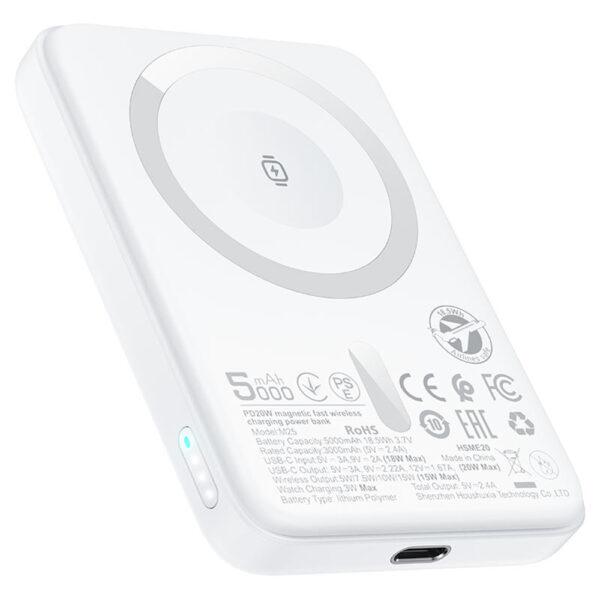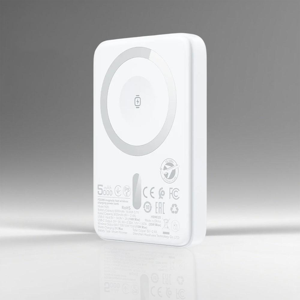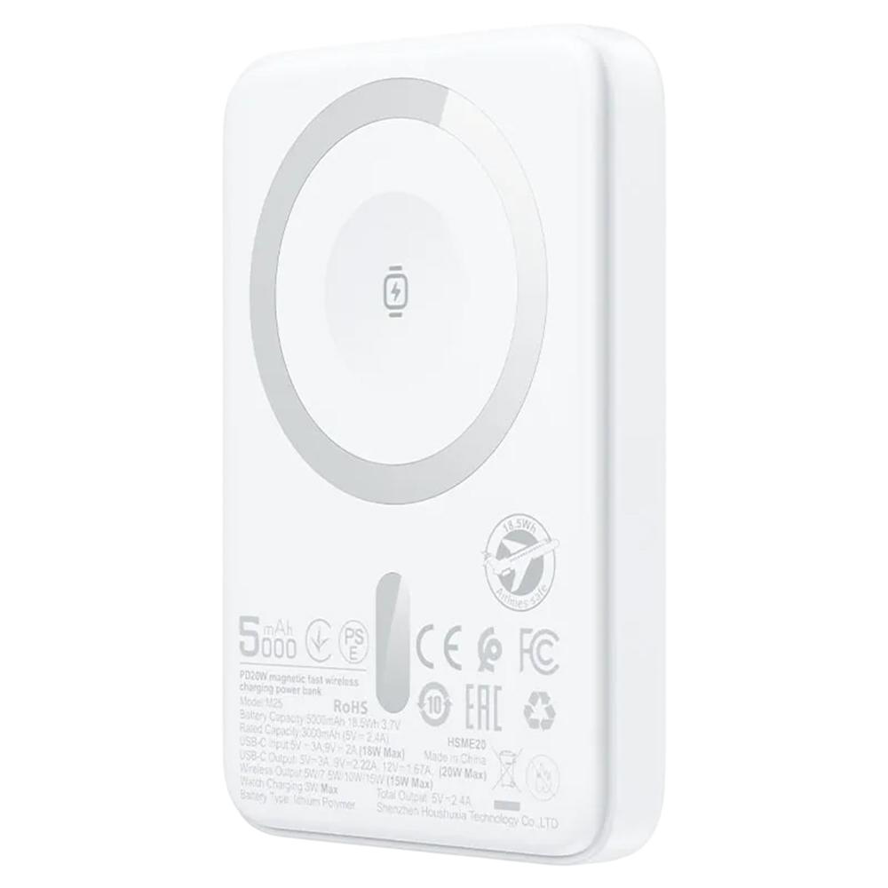 Batterie externe magnétique Acefast M25 5 000 mAh – MagSafe – Charge rapide 20 W – USB-C (5V/2,4A) – Indicateur LED – Blanc