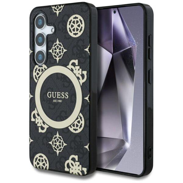 Coque Guess Peony Grained Hot Stamp Triangle Logo MagSafe pour Samsung Galaxy S25 – Black