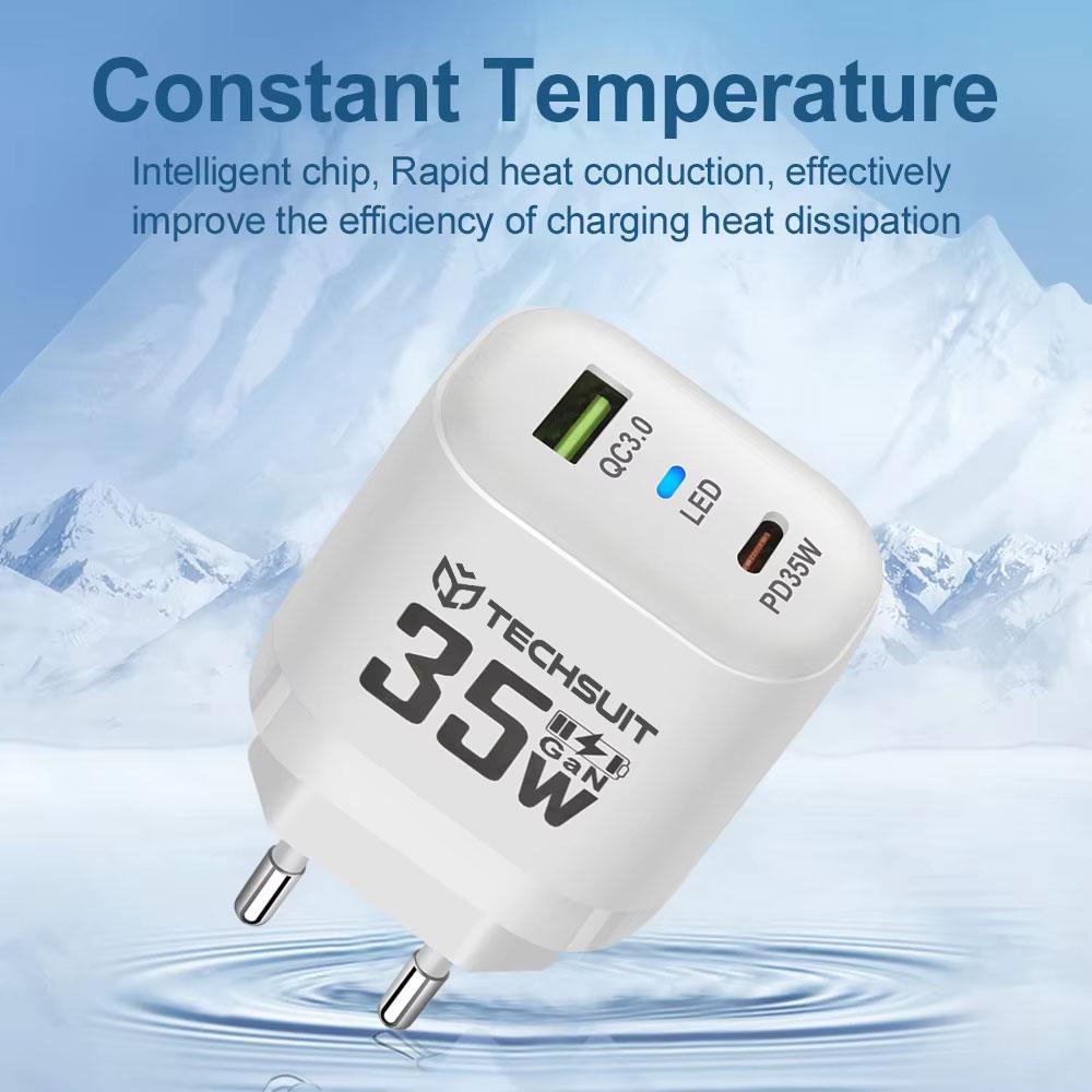Optez pour le chargeur secteur Techsuit CHPD174 et profitez d’une recharge rapide au quotidien, à la maison comme au bureau. Avec sa puissance totale jusqu’à 35W, il redonne de l’énergie efficacement à vos appareils, sans compromis sur la stabilité de charge.