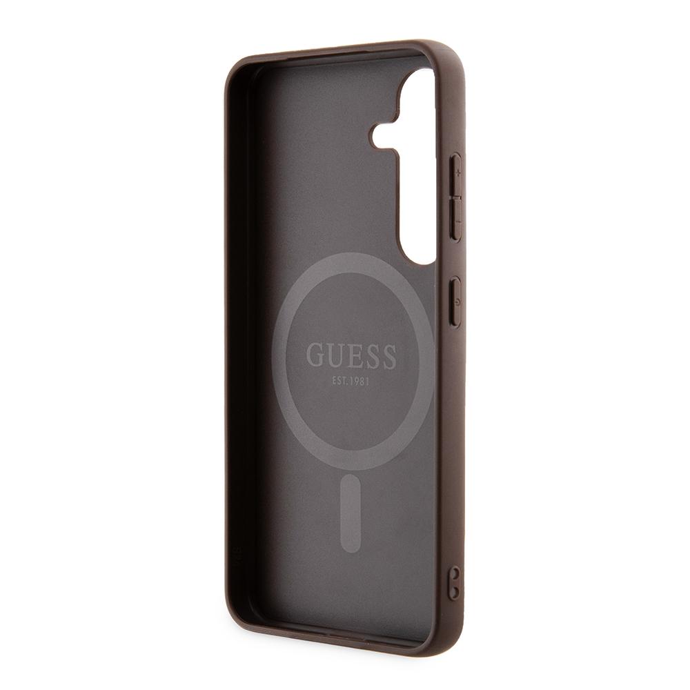 Conçue en polycarbonate résistant recouvert de PU haut de gamme, cette coque combine solidité et toucher agréable. L’anneau magnétique intégré au centre assure un alignement optimal avec les chargeurs et accessoires magnétiques compatibles, tout en ajoutant une touche visuelle très premium autour du logo Guess.