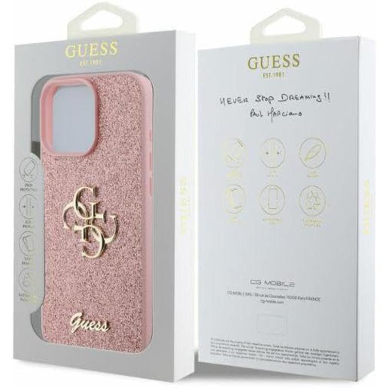 Coque Guess Glitter Fixed Big 4G pour iPhone 16 Pro – Pink