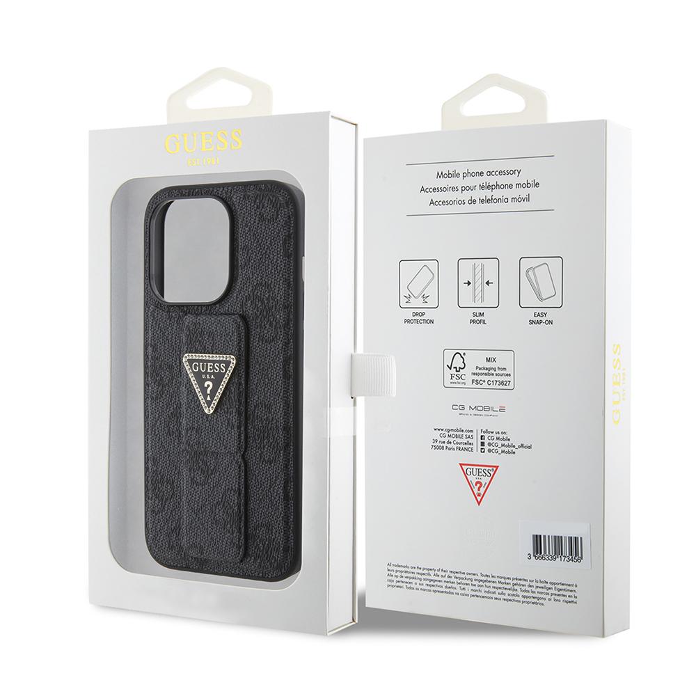 Coque Guess Grip Stand 4G Triangle Strass pour iPhone 15 – Black