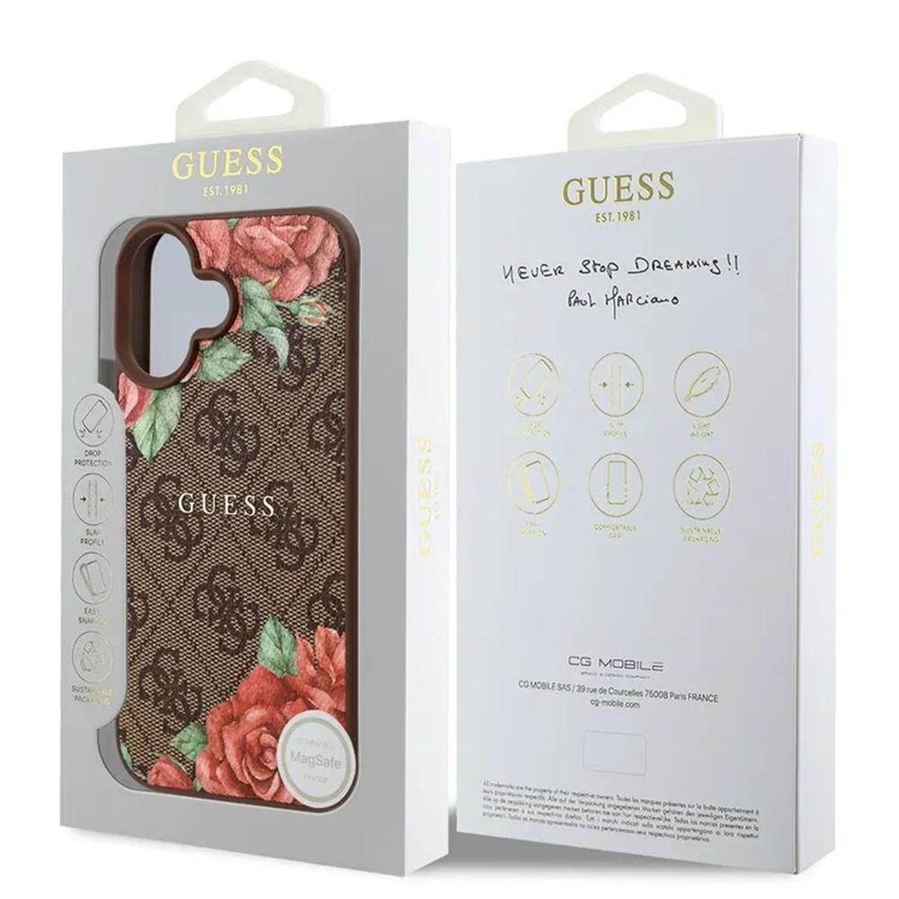 Coque Guess Hardcase 4G Flower Print MagSafe pour iPhone 16 – Brown