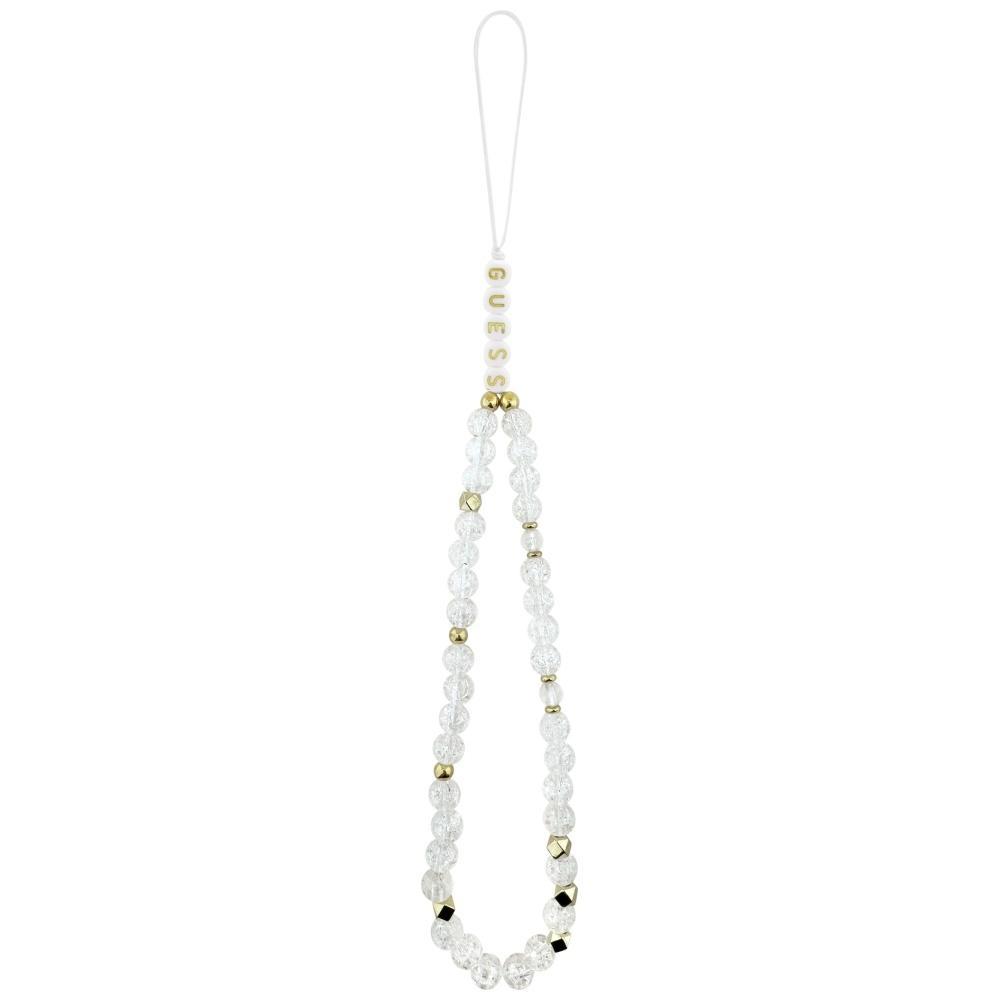 Coque Guess IML Flowers Allover Electroplated MagSafe avec dragonne de perles pour iPhone 17 Pro – White