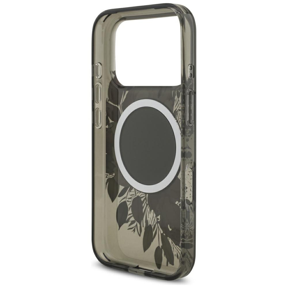 Coque Guess IML Flowers MagSafe avec dragonne de perles pour iPhone 17 Pro – Black