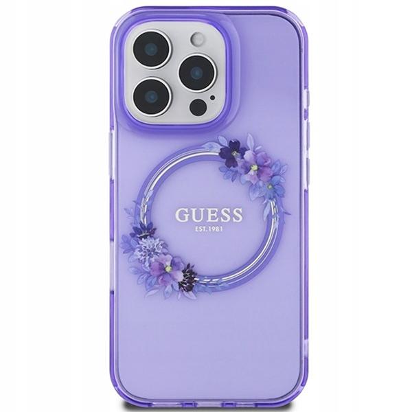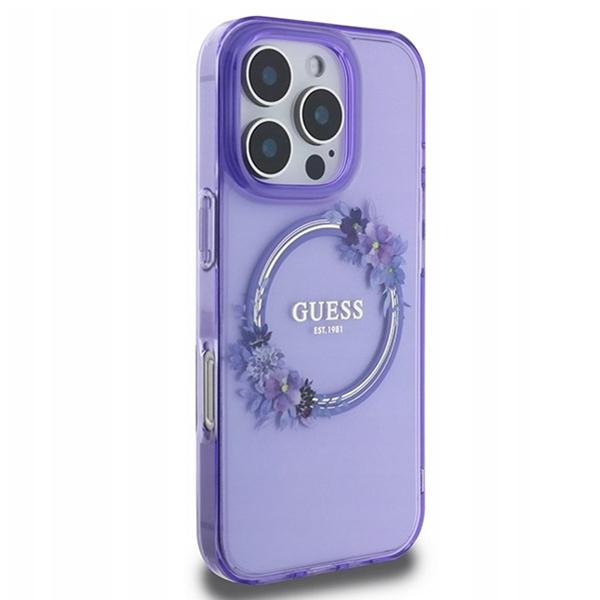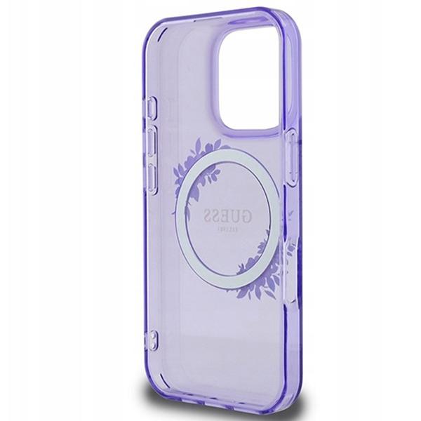 Coque Guess IML Flowers Wreath MagSafe pour iPhone 16 Pro – Purple