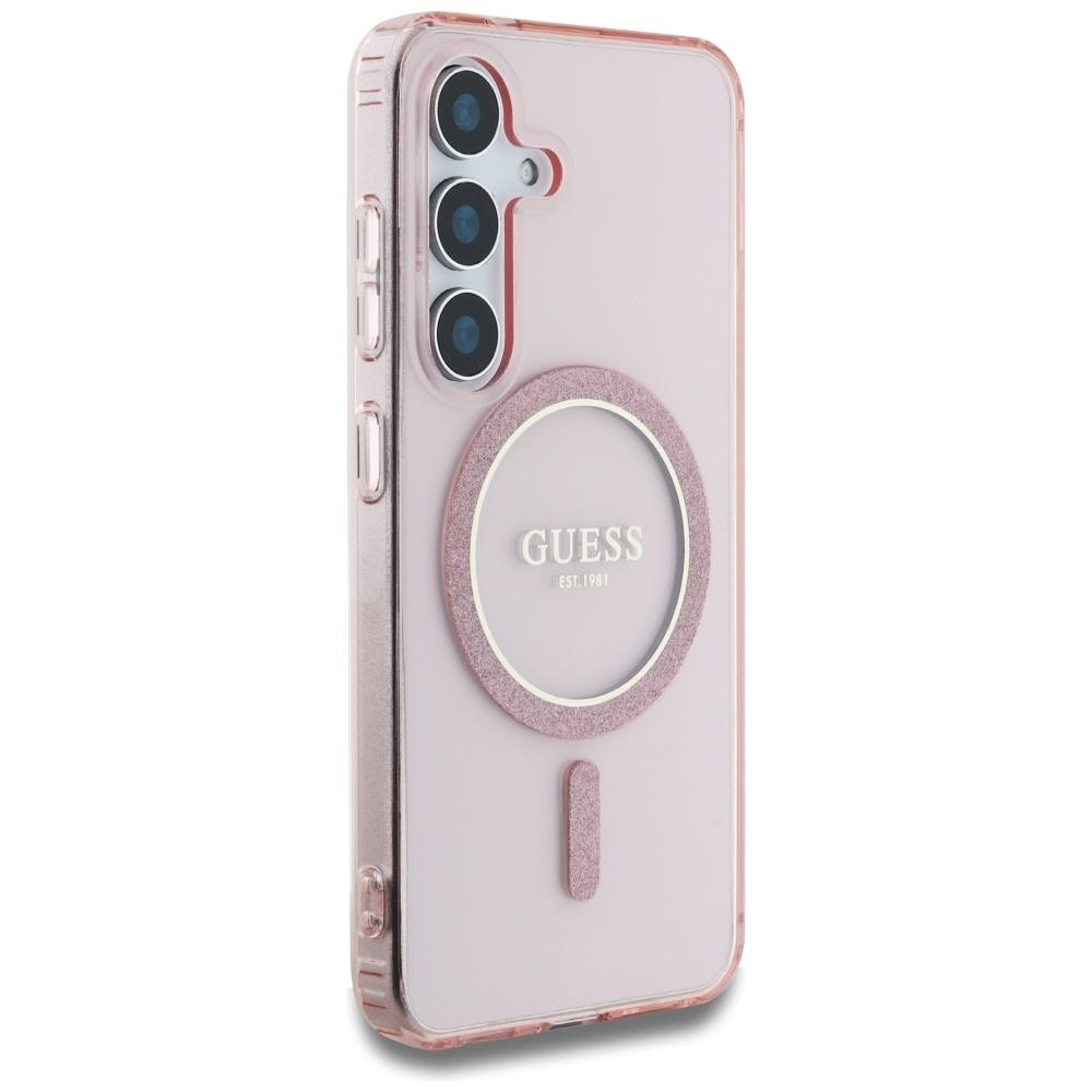 Coque Guess IML Glitter Circle MagSafe pour Samsung Galaxy S25 – Pink