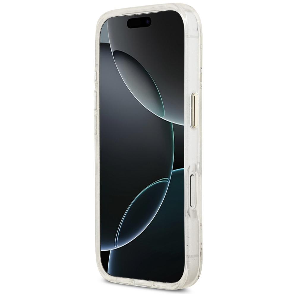 Coque Guess IML Metal Glitter Flowers Triangle MagSafe pour iPhone 17 Pro – White