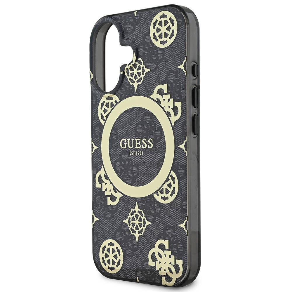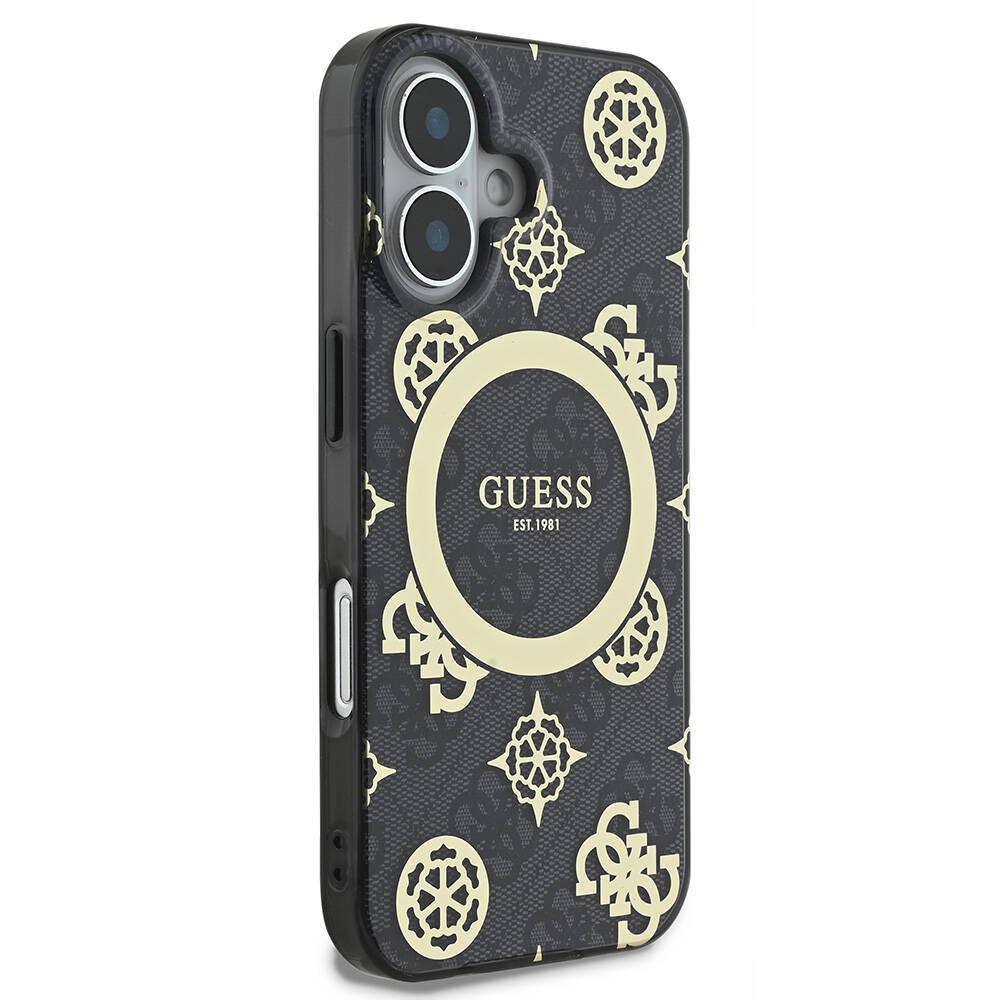 Coque Guess IML Peony On 4G Background MagSafe pour iPhone 16 – Black