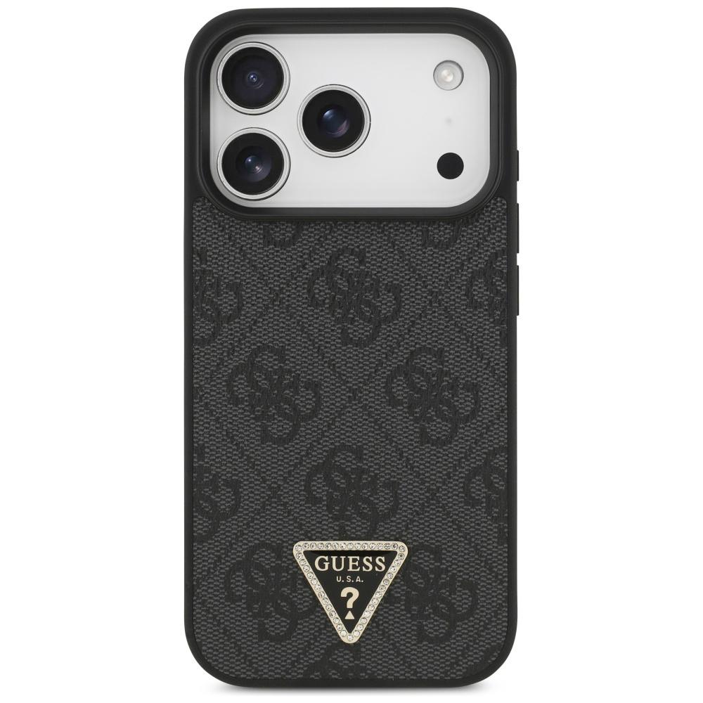 Coque Guess Leather 4G Triangle Strass MagSafe pour iPhone 17 Pro – Black
