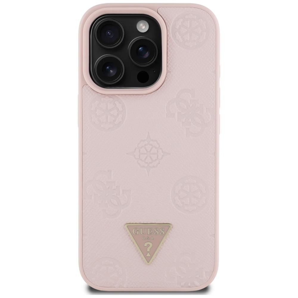 Coque Guess Peony Grained Hot Stamp Triangle MagSafe pour iPhone 16 Pro – Pink