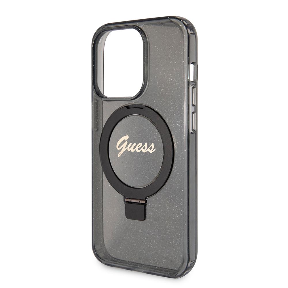 Coque Guess Ring Stand Script Glitter MagSafe pour iPhone 15 Pro Max – Black