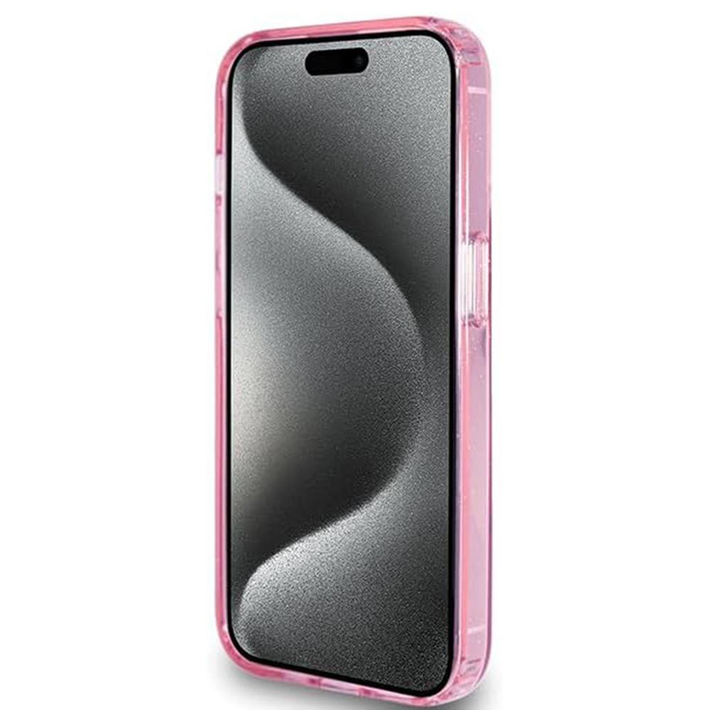 Coque Guess Ring Stand Script Glitter MagSafe pour iPhone 15 Pro – Pink