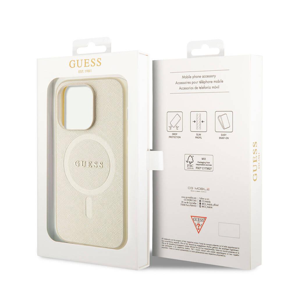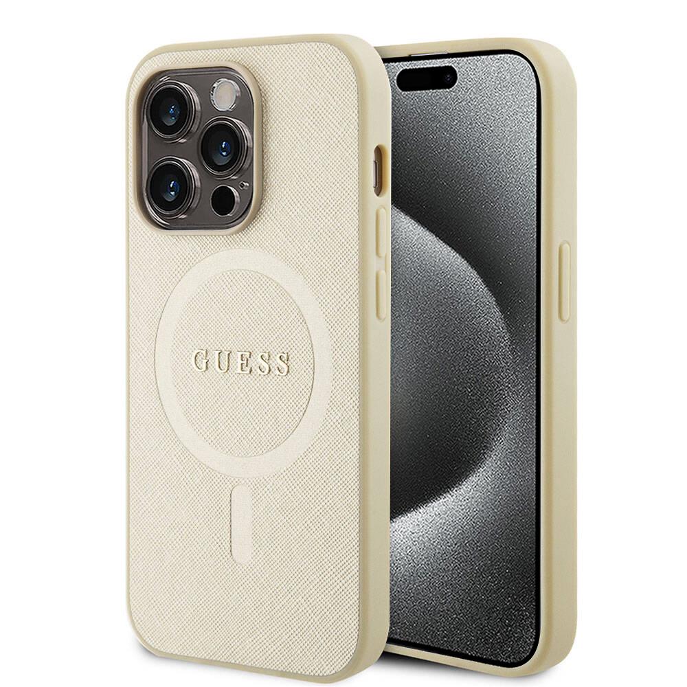 Coque Guess Saffiano MagSafe pour iPhone 15 Pro Max – Gold