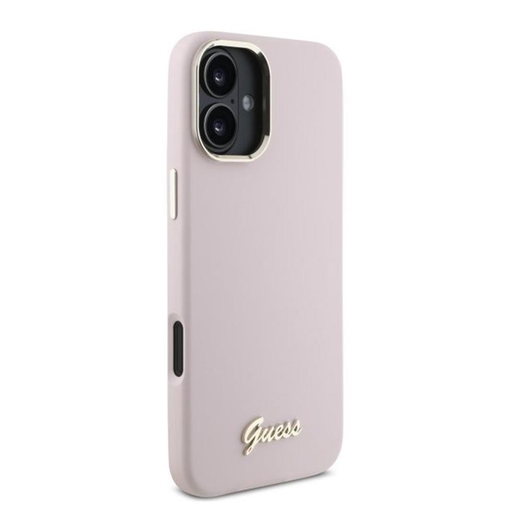 Coque Guess Silicone Script Metal Logo & Frame pour iPhone 16 – Pink