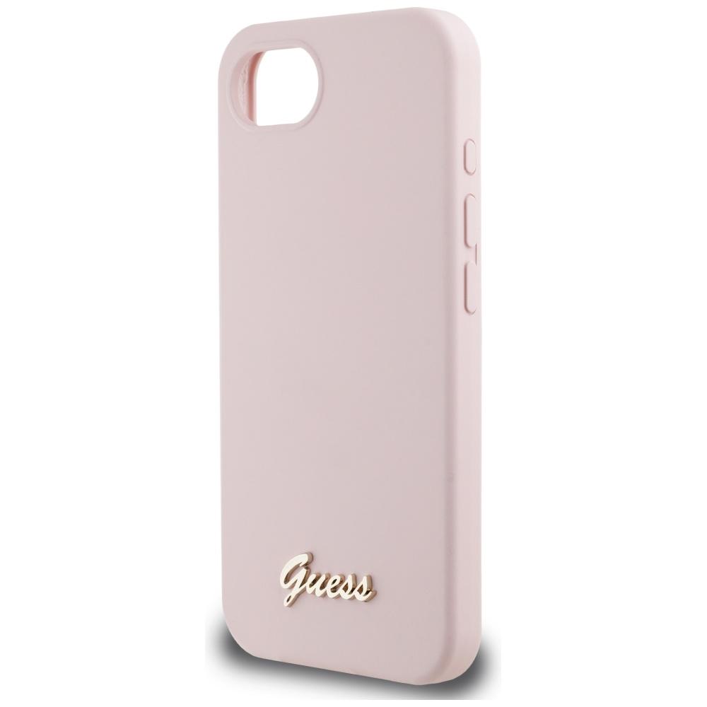 Coque Guess Silicone Script Metal Logo pour iPhone 16e – Pink