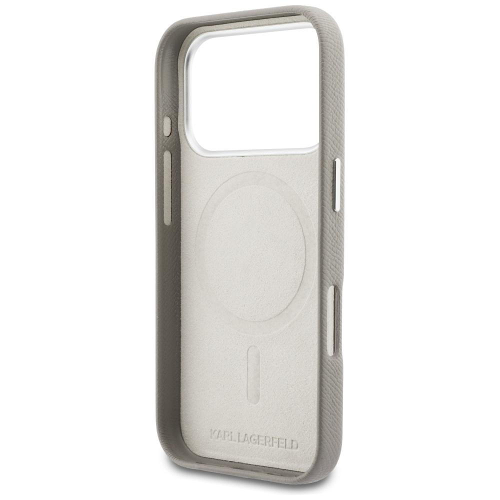 Coque Karl Lagerfeld Hardcase Leather MagSafe with K Head Logo pour iPhone 17 Pro – Grey