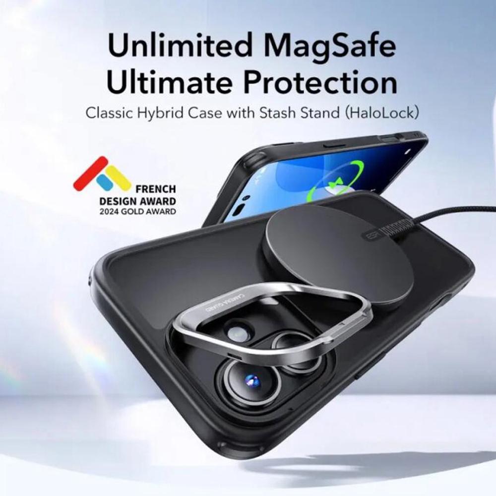 Coque MagSafe ESR Classic Hybrid HaloLock Kickstand pour iPhone 16 – Frosted Black