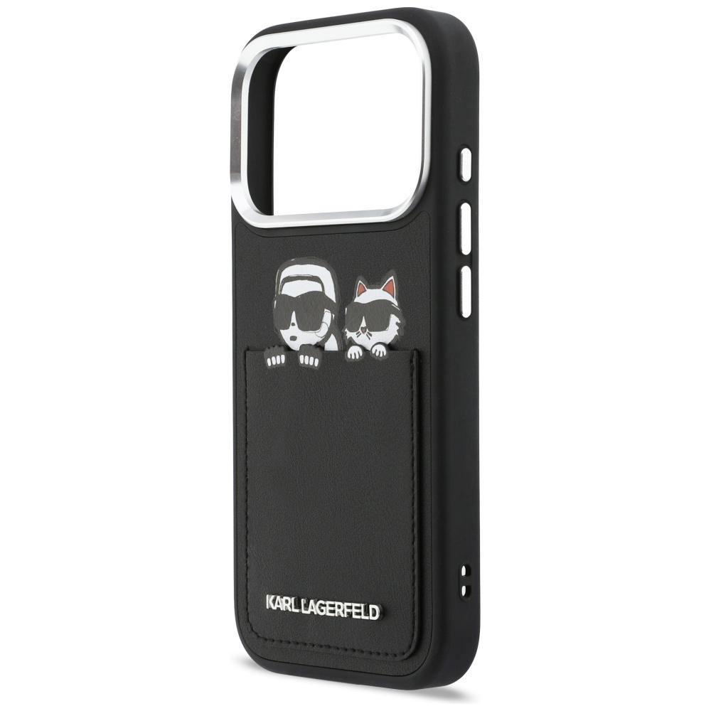 Coque porte-cartes Karl Lagerfeld Hardcase Leather K&C Print & Pocket pour iPhone 17 Pro – Black