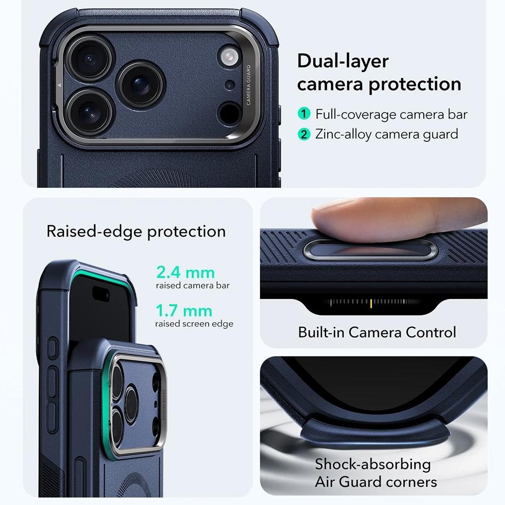 Coque renforcée ESR Cyber Armor Kickstand MagSafe pour iPhone 17 Pro – Blue