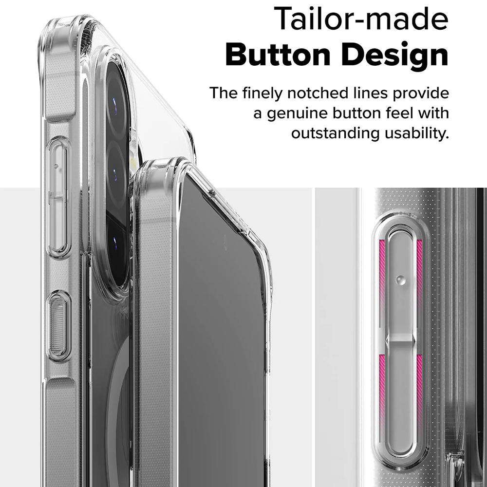 Pensée pour un usage de tous les jours, la Ringke Fusion Magnetic offre une prise en main confortable grâce à sa bordure légèrement texturée qui limite les risques de glisse. Les boutons latéraux restent facilement accessibles avec un clic précis, et les découpes autour du connecteur, du haut parleur et du micro sont soigneusement ajustées pour ne pas gêner l’écoute ni la charge. Des points d’attache permettent en plus de fixer une dragonne ou un tour de cou (vendus séparément) pour sécuriser encore davantage votre smartphone.