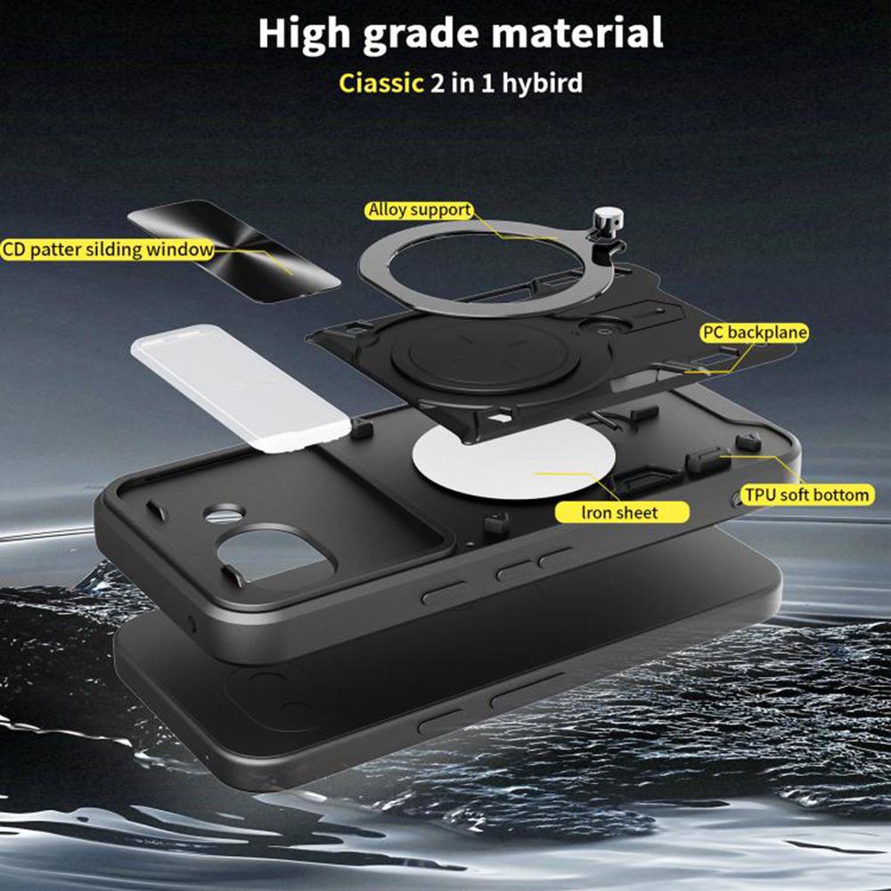 Pour encore plus de confort, la CamGuard Pro intègre un anneau métallique rotatif au dos qui sert à la fois de poignée sécurisée pour une meilleure prise en main et de support vidéo pour poser le téléphone en mode paysage. Cet anneau fonctionne aussi comme point d’ancrage idéal sur de nombreux supports magnétiques pour voiture, grâce à la plaque métallique intégrée dans la coque. Tu profites ainsi d’une solution tout-en-un pour la maison, le bureau et la route.
