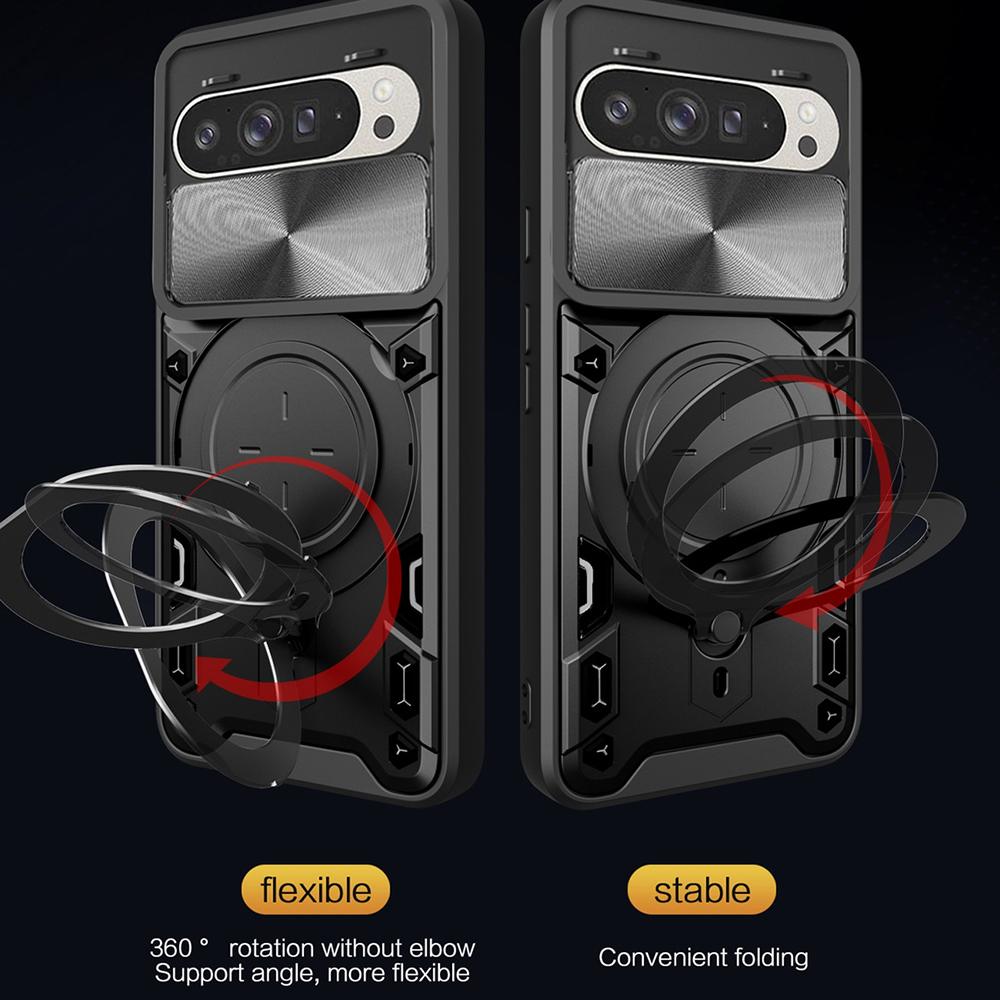 Pour encore plus de confort, la CamGuard Pro intègre un anneau métallique rotatif au dos qui sert à la fois de poignée sécurisée pour une meilleure prise en main et de support vidéo pour poser le téléphone en mode paysage. Cet anneau fonctionne aussi comme point d’ancrage idéal sur de nombreux supports magnétiques pour voiture, grâce à la plaque métallique intégrée dans la coque. Tu profites ainsi d’une solution tout-en-un pour la maison, le bureau et la route.