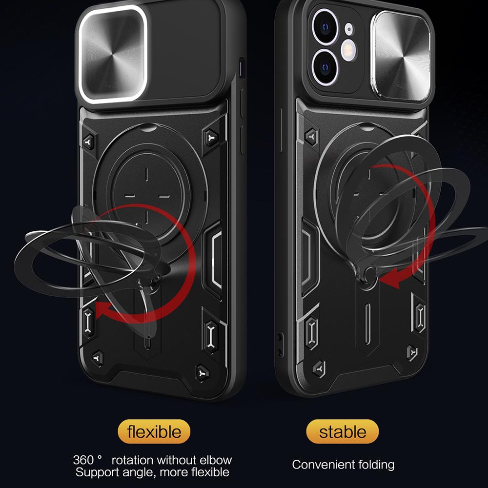 + Anneau métallique rotatif intégré servant à la fois de poignée sécurisée et de support pour poser le téléphone en mode paysage.