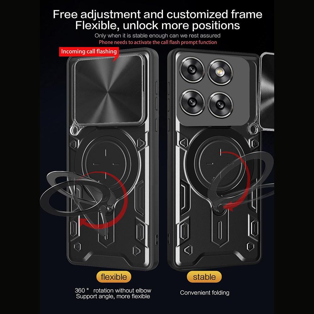 Pour encore plus de confort, la CamGuard Pro intègre un anneau métallique rotatif au dos qui sert à la fois de poignée sécurisée pour une meilleure prise en main et de support vidéo pour poser le téléphone en mode paysage. Cet anneau fonctionne aussi comme point d’ancrage idéal sur de nombreux supports magnétiques pour voiture, grâce à la plaque métallique intégrée dans la coque. Tu profites ainsi d’une solution tout-en-un pour la maison, le bureau et la route.