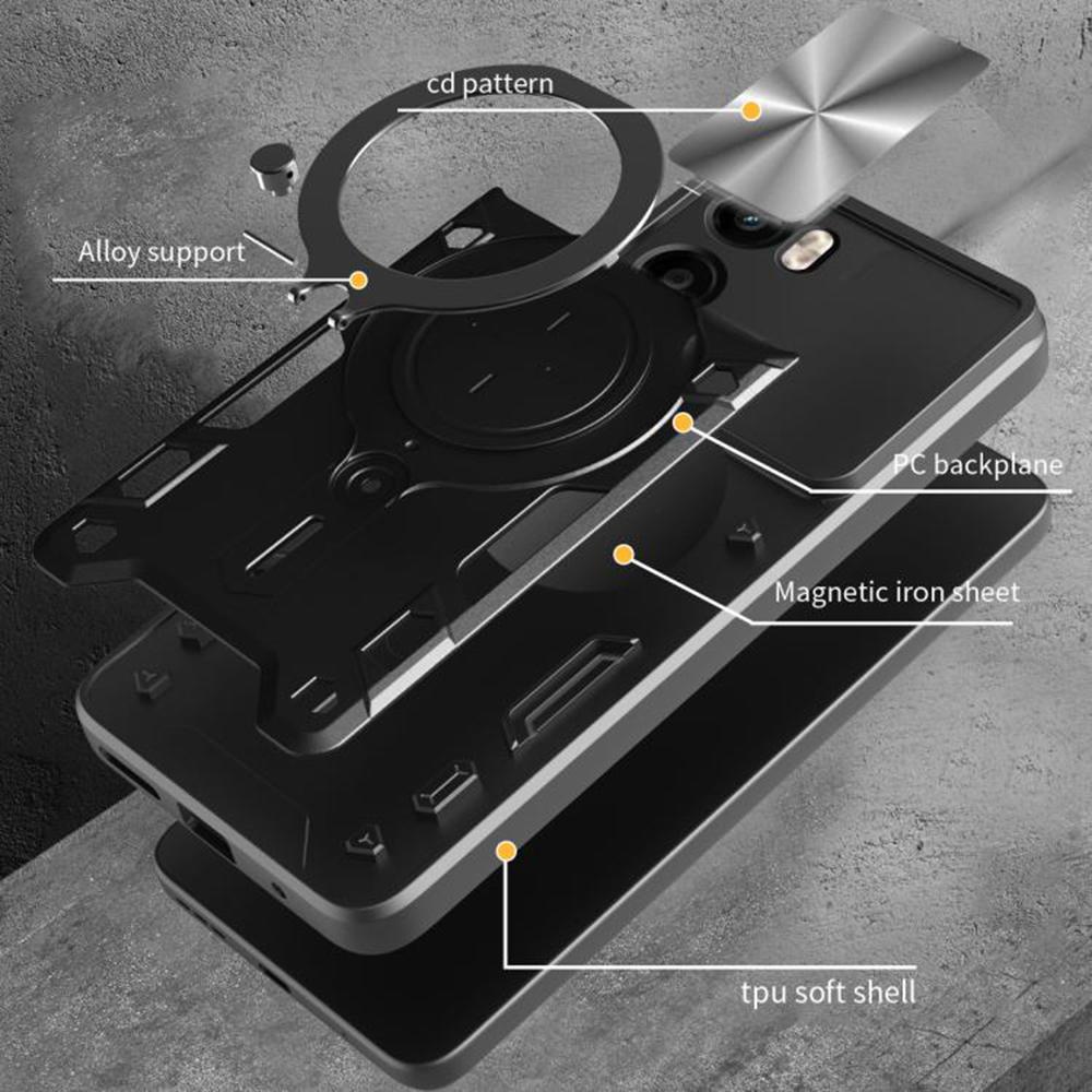 Pour encore plus de confort, la CamGuard Pro intègre un anneau métallique rotatif au dos qui sert à la fois de poignée sécurisée pour une meilleure prise en main et de support vidéo pour poser le téléphone en mode paysage. Cet anneau fonctionne aussi comme point d’ancrage idéal sur de nombreux supports magnétiques pour voiture, grâce à la plaque métallique intégrée dans la coque. Tu profites ainsi d’une solution tout-en-un pour la maison, le bureau et la route.