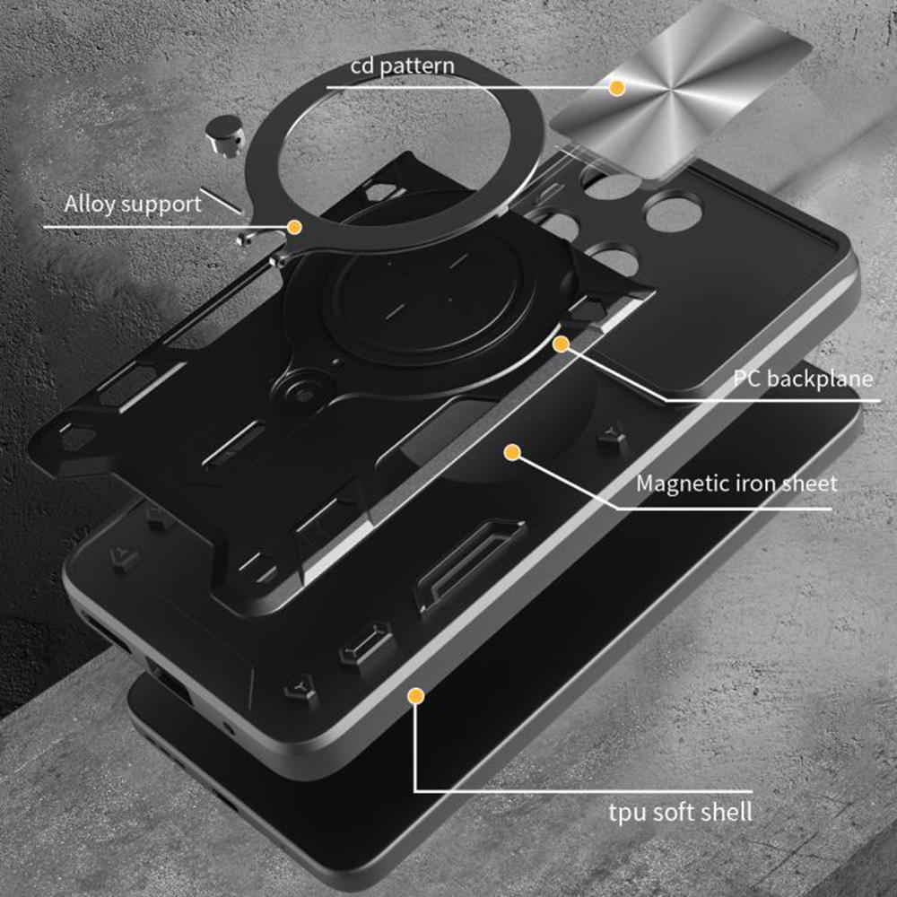 Pour encore plus de confort, la CamGuard Pro intègre un anneau métallique rotatif au dos qui sert à la fois de poignée sécurisée pour une meilleure prise en main et de support vidéo pour poser le téléphone en mode paysage. Cet anneau fonctionne aussi comme point d’ancrage idéal sur de nombreux supports magnétiques pour voiture, grâce à la plaque métallique intégrée dans la coque. Tu profites ainsi d’une solution tout-en-un pour la maison, le bureau et la route.