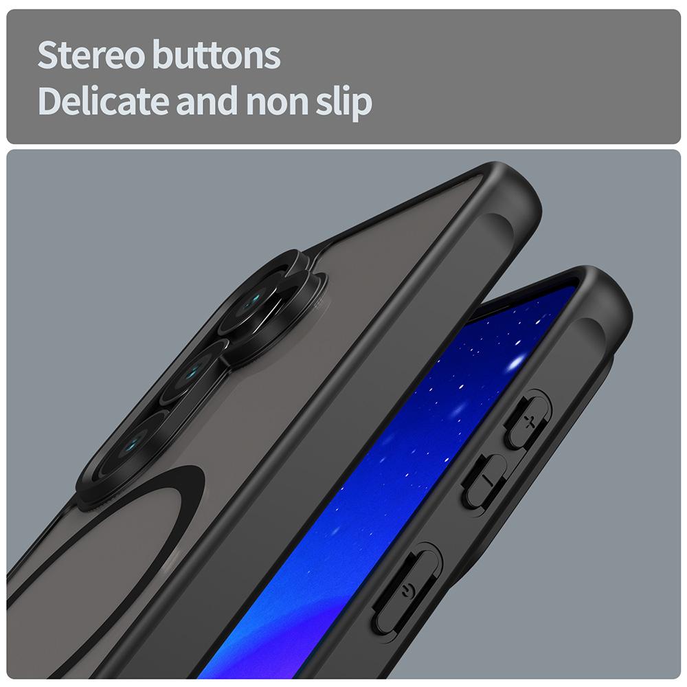 La série HaloFrost II intègre un système magnétique compatible MagSafe avec un anneau parfaitement aligné, ce qui assure une connexion stable avec vos chargeurs et supports magnétiques. Les boutons latéraux moulés en 3D restent réactifs et agréables au toucher, pour une utilisation fluide et naturelle de toutes les fonctions.