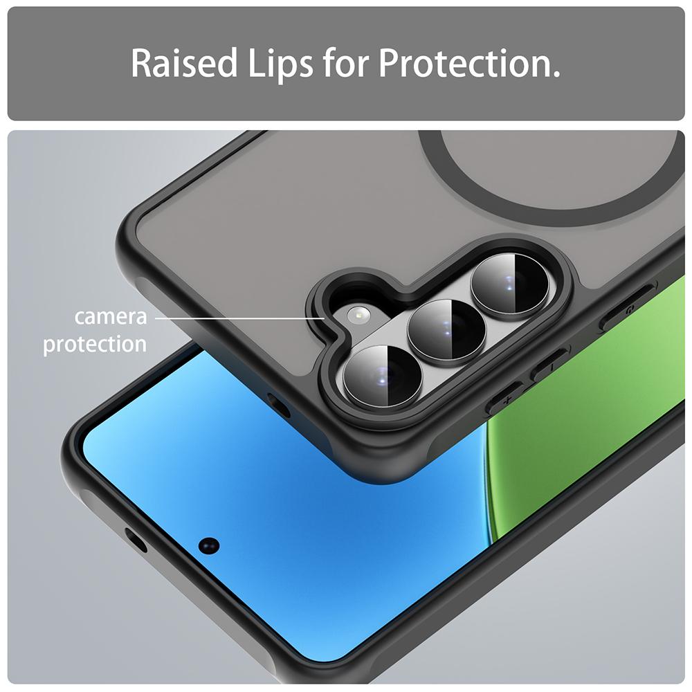 La série HaloFrost II intègre un système magnétique compatible MagSafe avec un anneau parfaitement aligné, ce qui assure une connexion stable avec vos chargeurs et supports magnétiques. Les boutons latéraux moulés en 3D restent réactifs et agréables au toucher, pour une utilisation fluide et naturelle de toutes les fonctions.