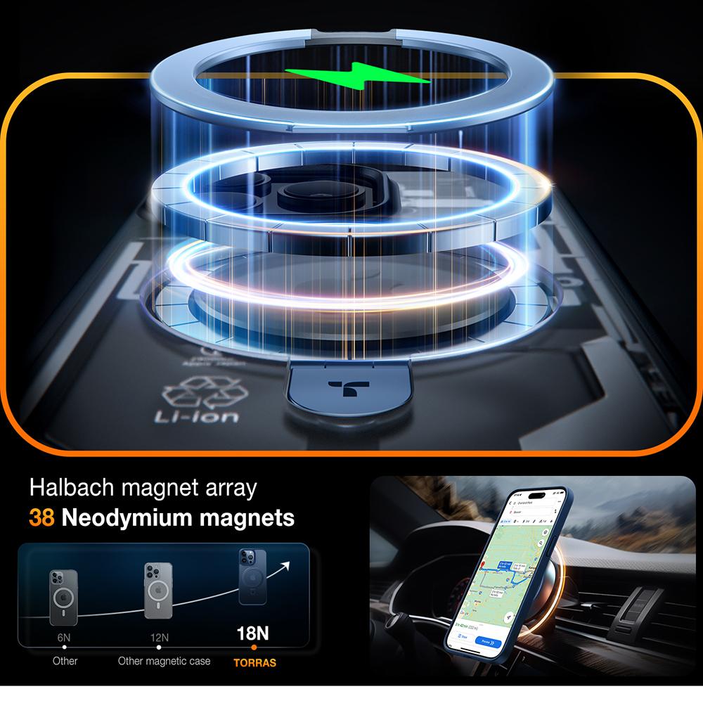 Les produits Torras utilisent principalement un mélange de TPU et polycarbonate pour absorber les chocs, avec des renforts d’angle et des contours surélevés. Certains modèles intégrent des aimants haute performance, des revêtements anti-rayures, des systèmes anti-jaunissement et des stands intégrés pour un usage mains libres fluide et stable.