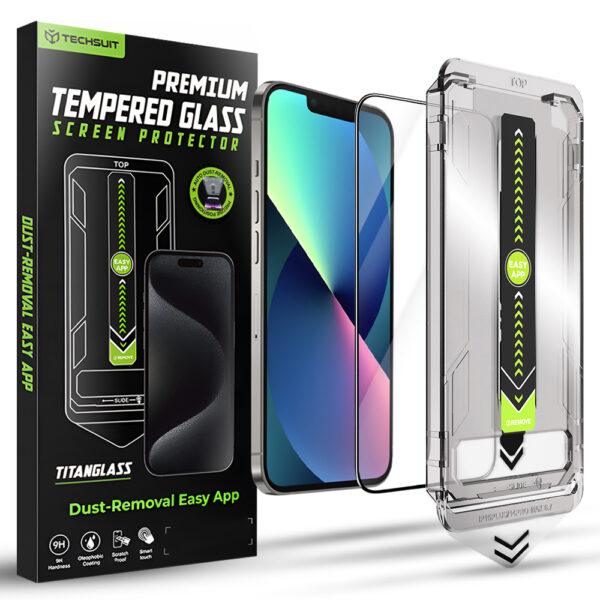 Lot de 2 protections d’écran Techsuit TitanGlass FullCover avec applicateur pour iPhone 15 Pro – Black