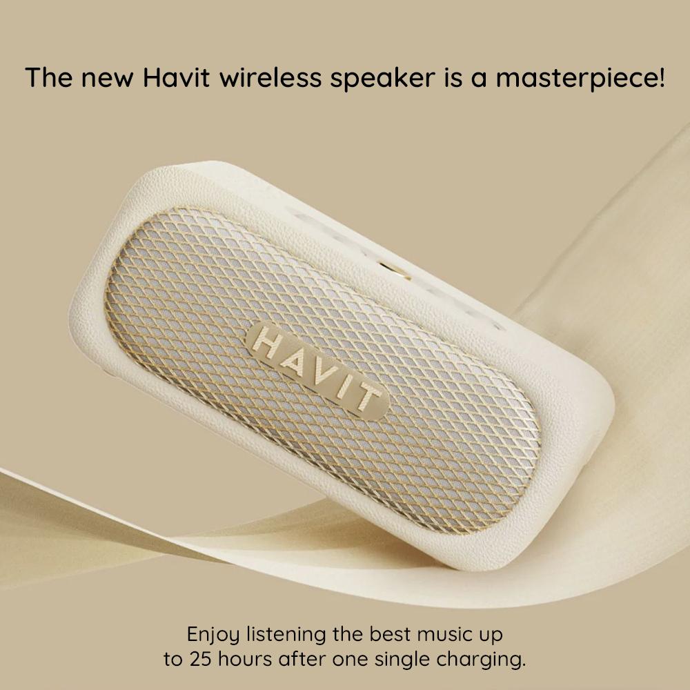 Enceinte Bluetooth portable Havit SK905BT 2 x 10W IPX7 autonomie 25 h – Beige