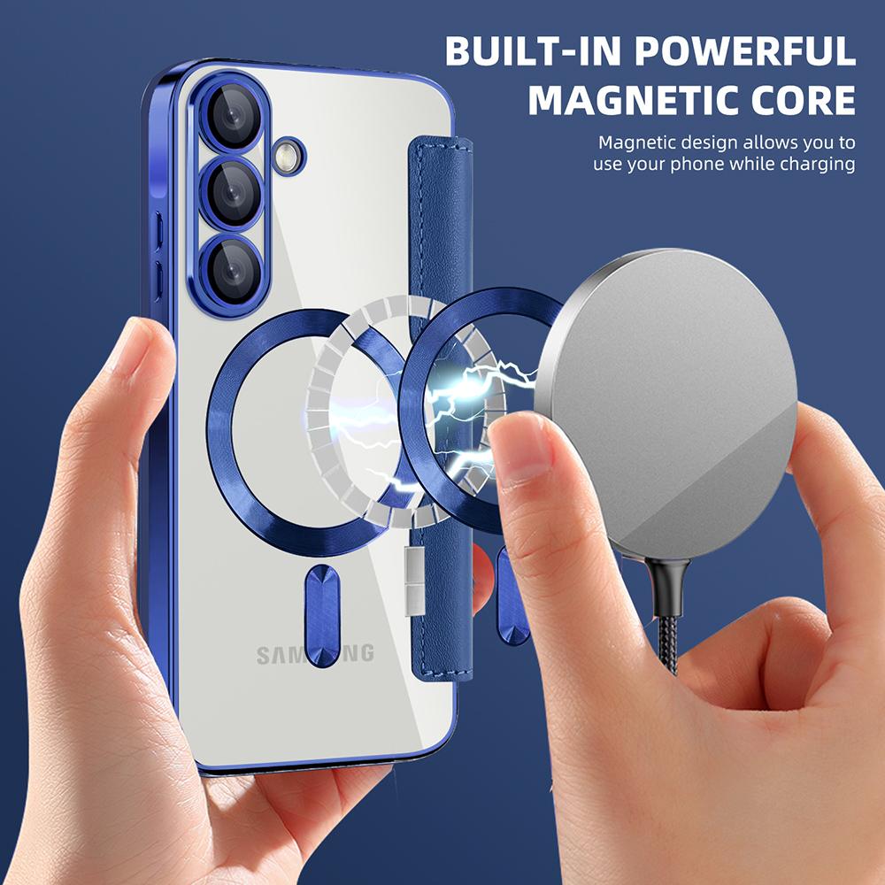 L’anneau magnétique intégré assure un alignement instantané avec les chargeurs et accessoires compatibles, pour une fixation stable et une charge sans fil efficace. À l’intérieur, des emplacements discrets permettent de glisser cartes et reçus, avec un rabat qui se transforme en support vidéo pour un confort mains libres.