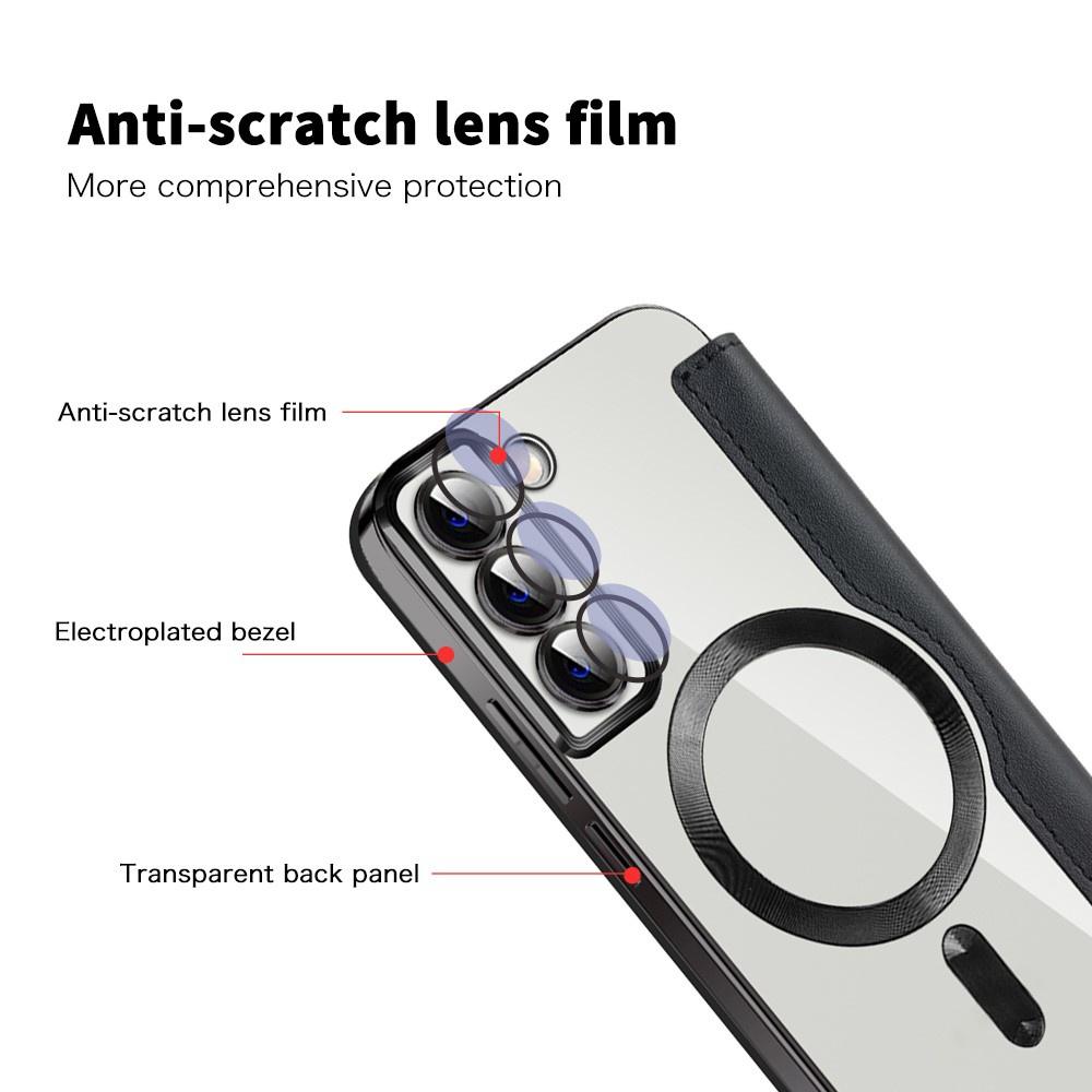 L’anneau magnétique intégré assure un alignement instantané avec les chargeurs et accessoires compatibles, pour une fixation stable et une charge sans fil efficace. À l’intérieur, des emplacements discrets permettent de glisser cartes et reçus, avec un rabat qui se transforme en support vidéo pour un confort mains libres.