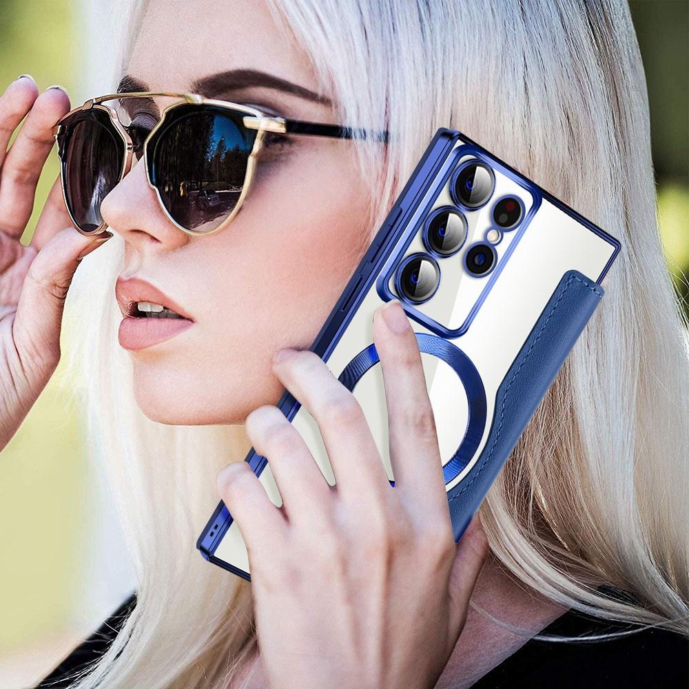 Étui portefeuille Techsuit SmartMag Book Case pour Samsung Galaxy S22 Ultra – Blue