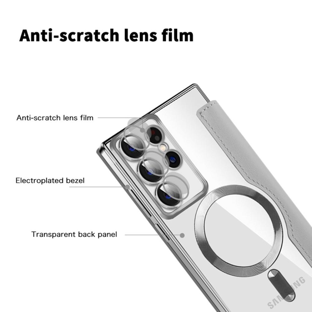 L’anneau magnétique intégré assure un alignement instantané avec les chargeurs et accessoires compatibles, pour une fixation stable et une charge sans fil efficace. À l’intérieur, des emplacements discrets permettent de glisser cartes et reçus, avec un rabat qui se transforme en support vidéo pour un confort mains libres.