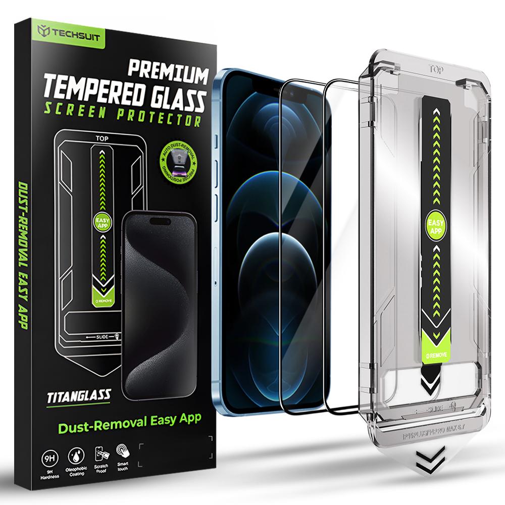 Lot de 2 protections d’écran Techsuit TitanGlass FullCover avec applicateur pour iPhone 12 Pro Max – Black